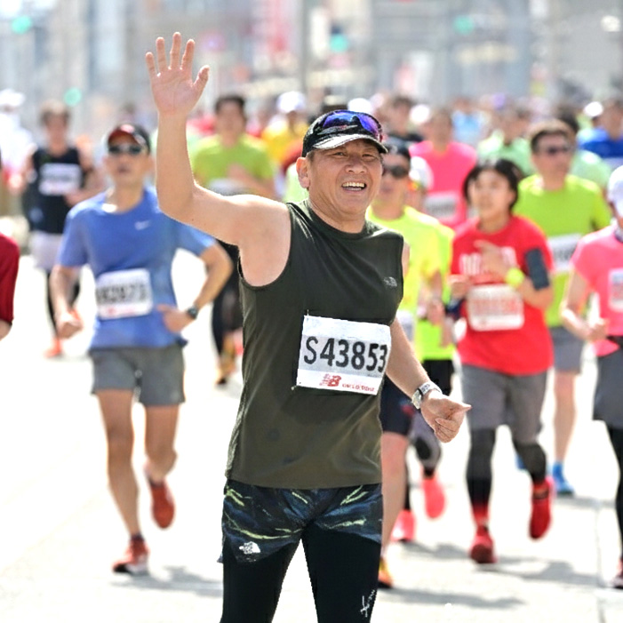 社員はそれぞれのペースで楽しみ、山下は10kmを50分48秒で激走!